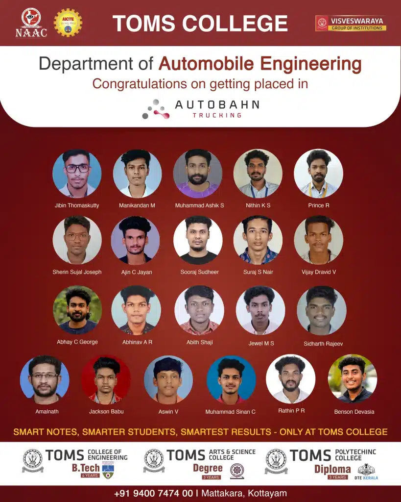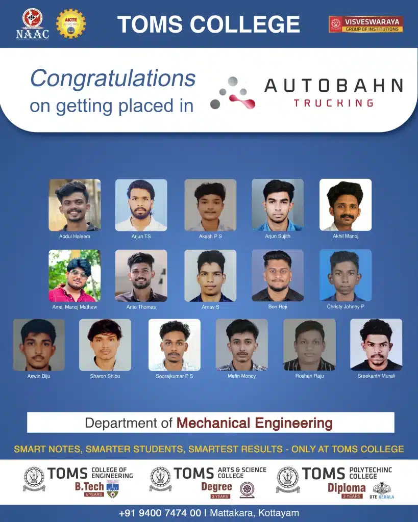 At TOMS College of Engineering, student placements are Our Top Priority.